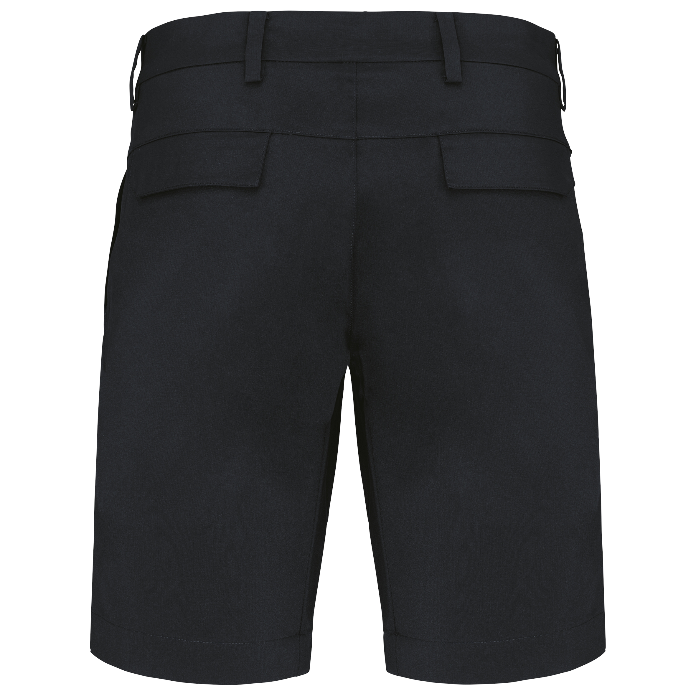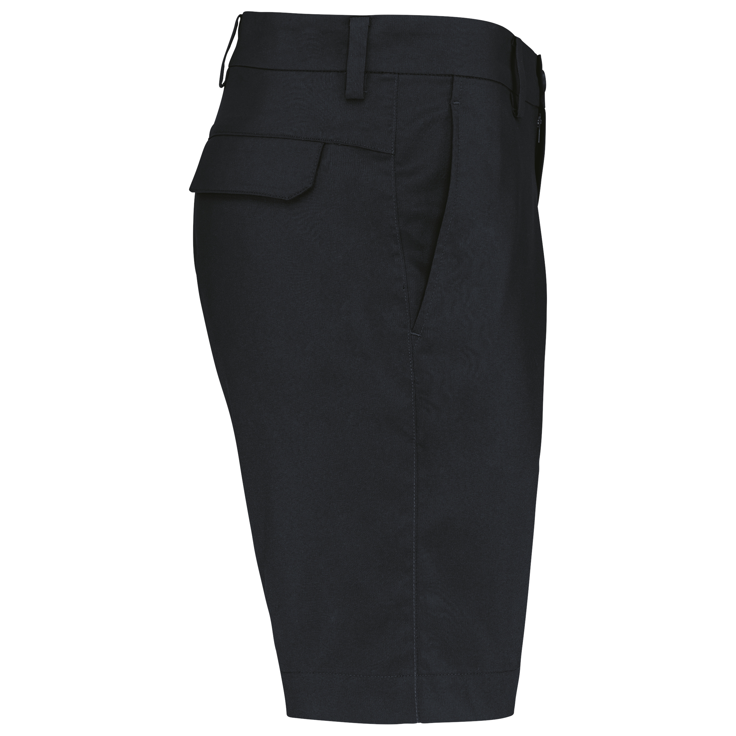 96% polyester / 4% elasthan. Waterafstotende soepele stof voor een optimaal comfort. Getailleerde snit. Riemlussen. 2 diepe zijzakken en 2 achterzakken met klep.