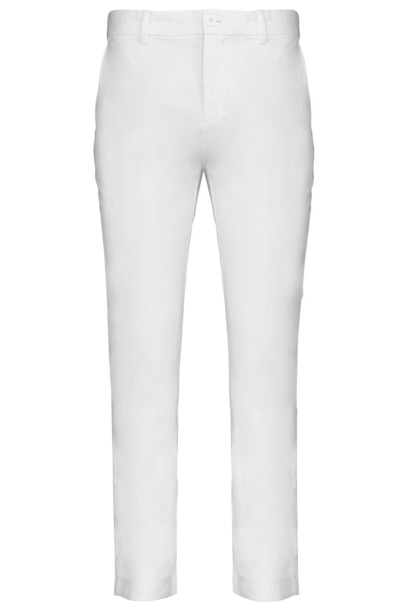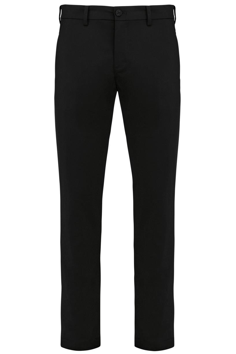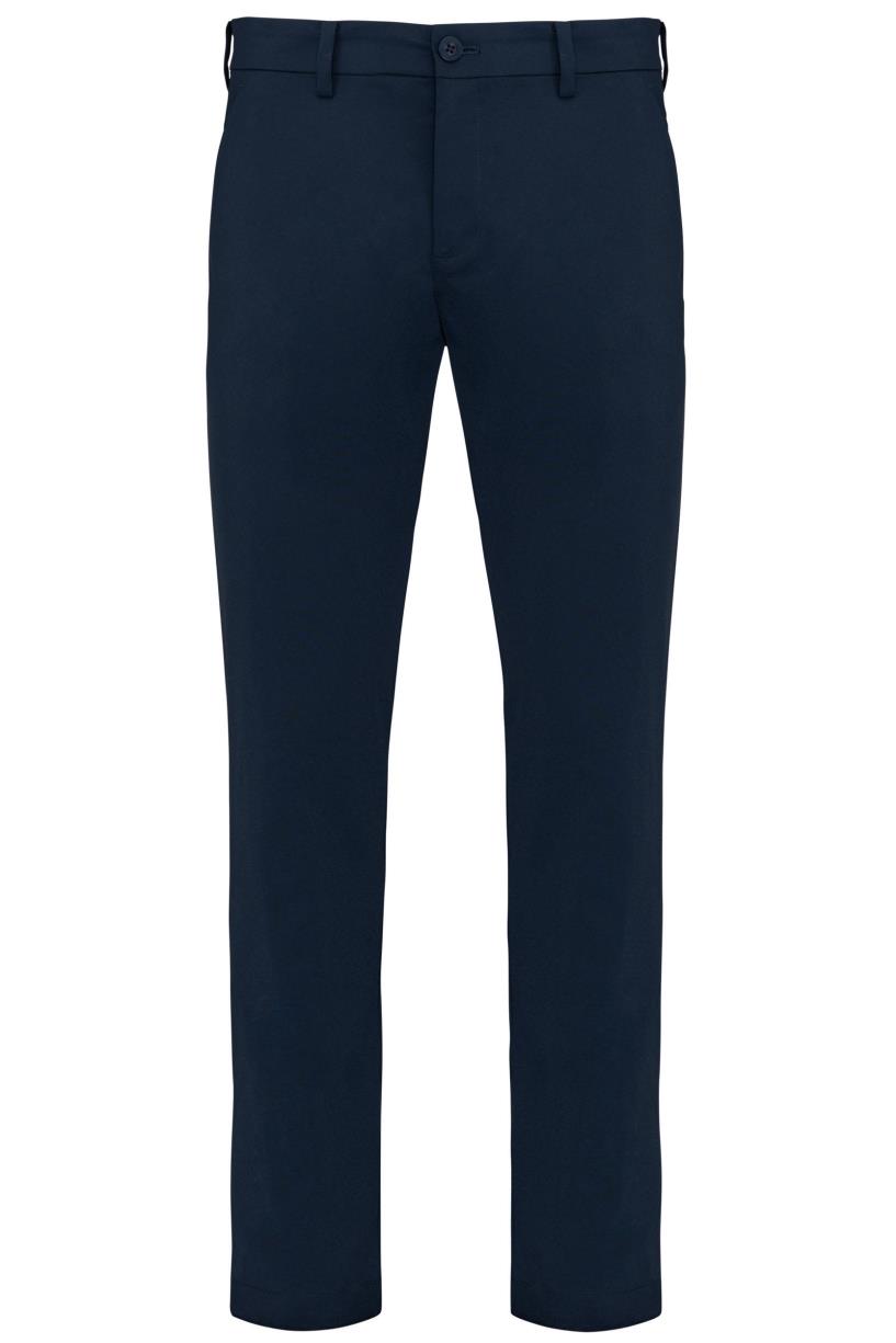96% polyester / 4% elasthan. Waterafstotende soepele stof voor een optimaal comfort. Getailleerde snit. Riemlussen. 2 diepe zijzakken en 2 achterzakken met klep.