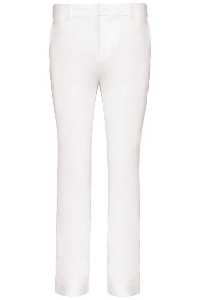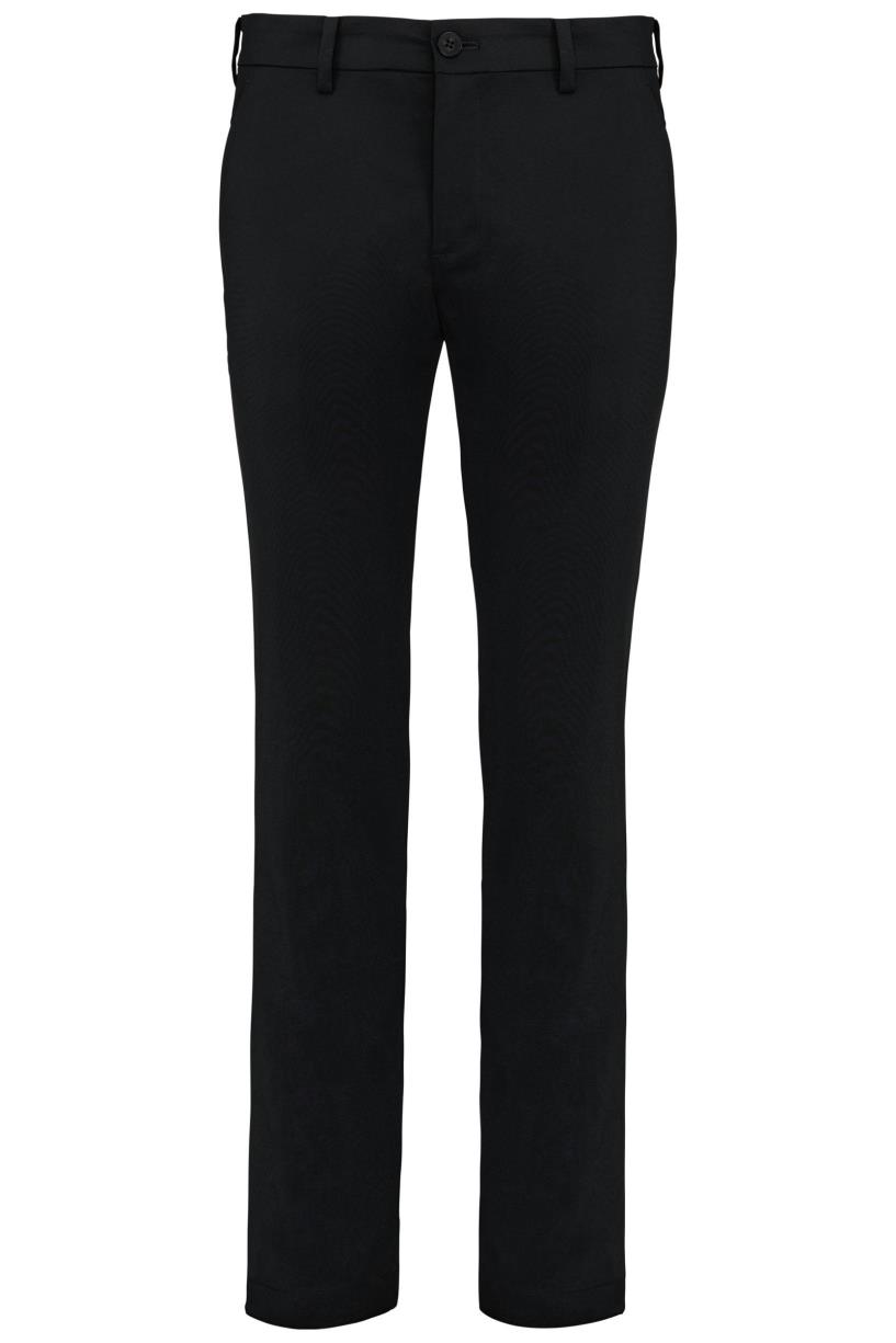 96% polyester / 4% elasthan. Waterafstotende soepele stof voor een optimaal comfort. Elegante getailleerde snit. Riemlussen. 2 diepe zijzakken en 2 achterzakken met klep.