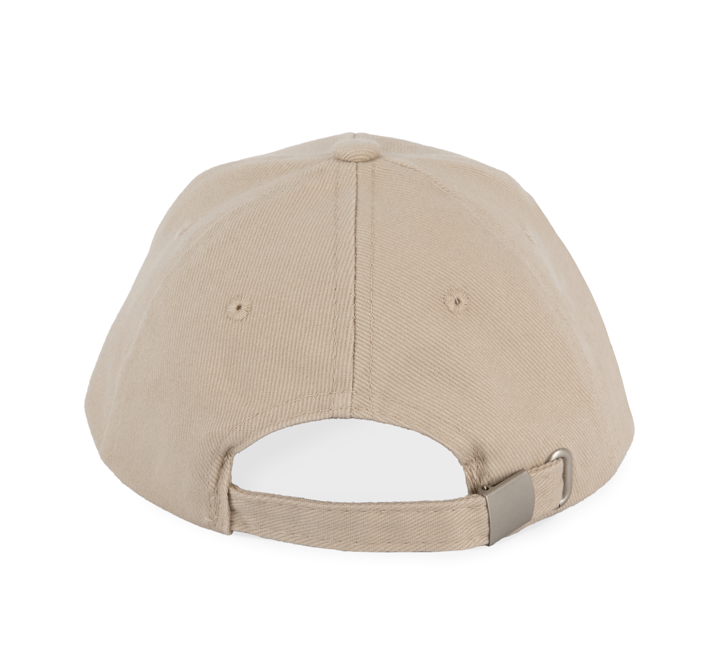 100% zwaar geborsteld katoen twill. Voorgevormde klep met contrasterende bies. Verstelbare sluiting met een zilverkleurige metalen gesp.
