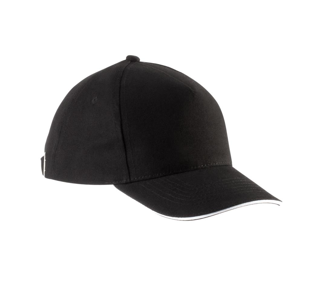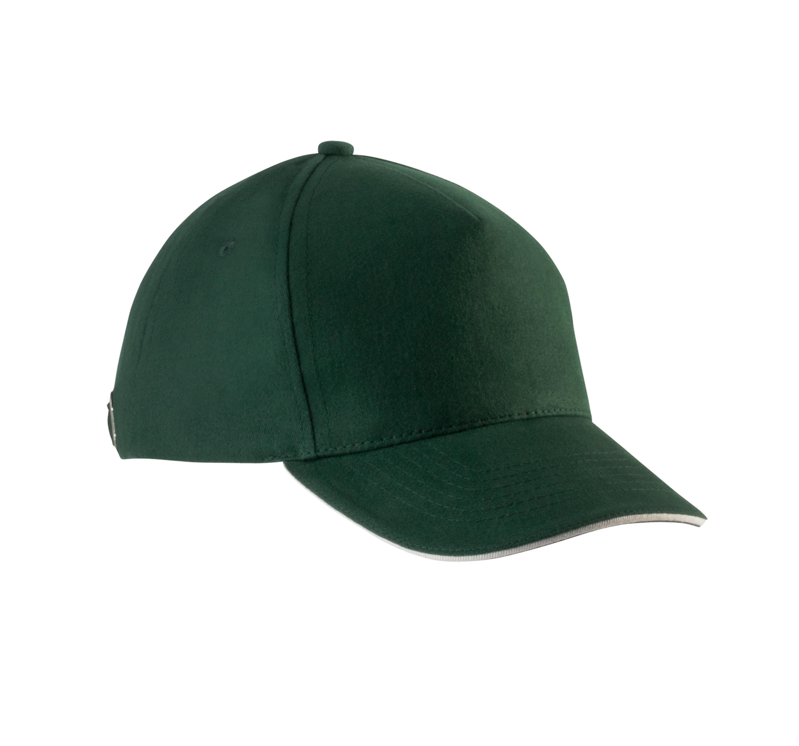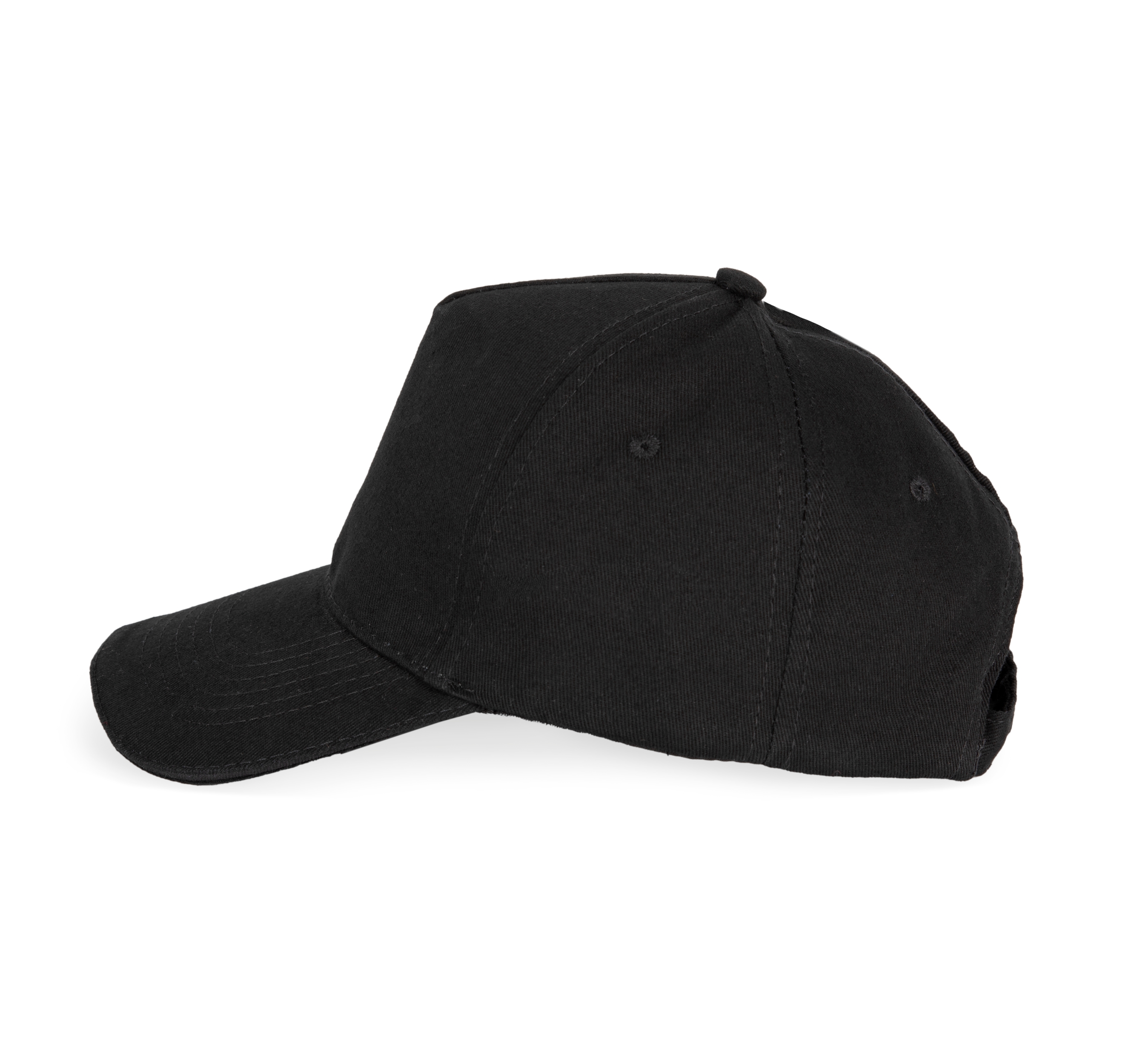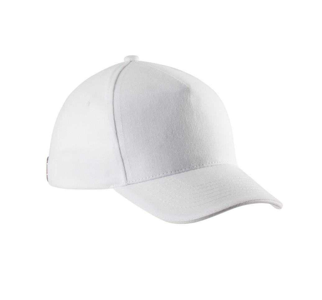 100% geborsteld twillkatoen. 5 panelen. Contrasterende bies. Verstelbare sluiting aan de achterkant met metalen gesp. Hoofdomvang: 53 cm.