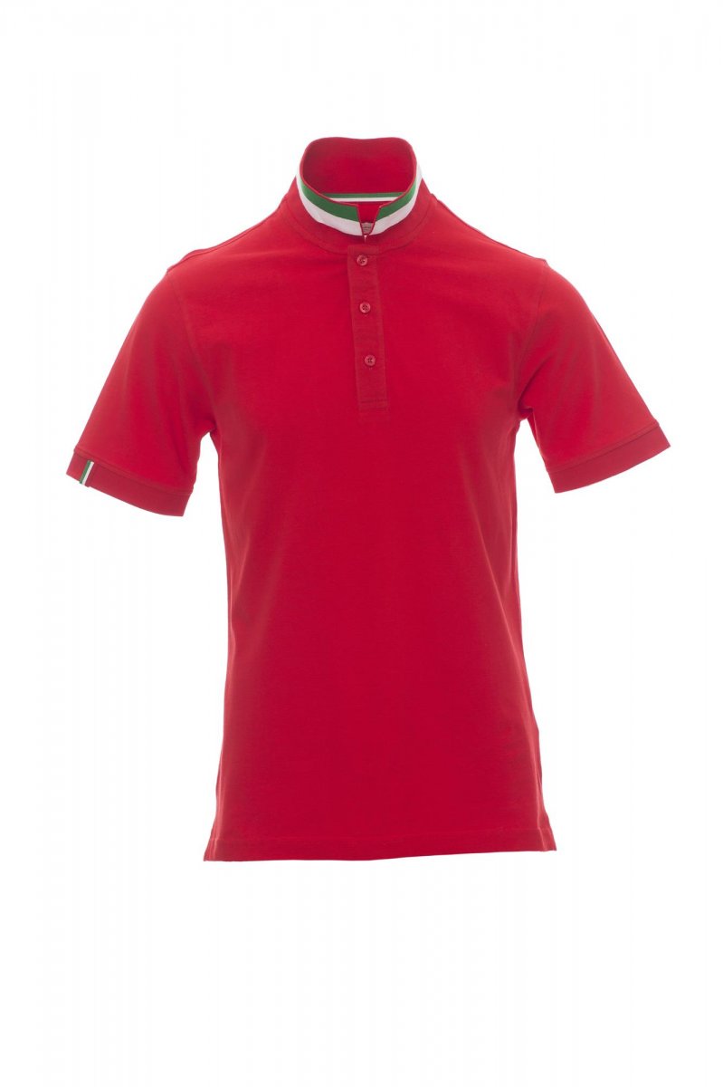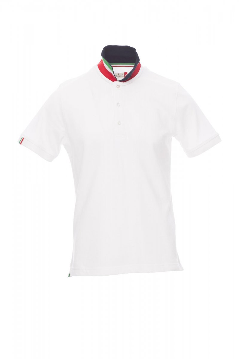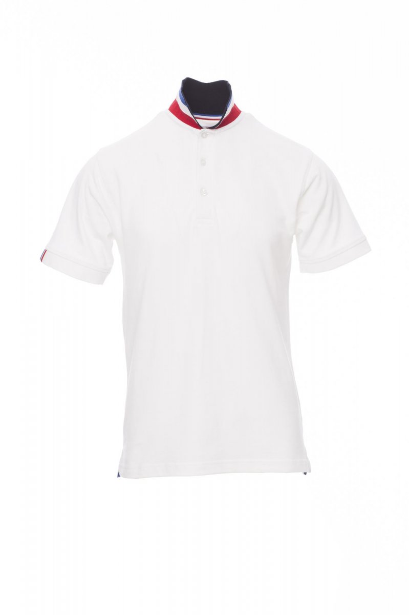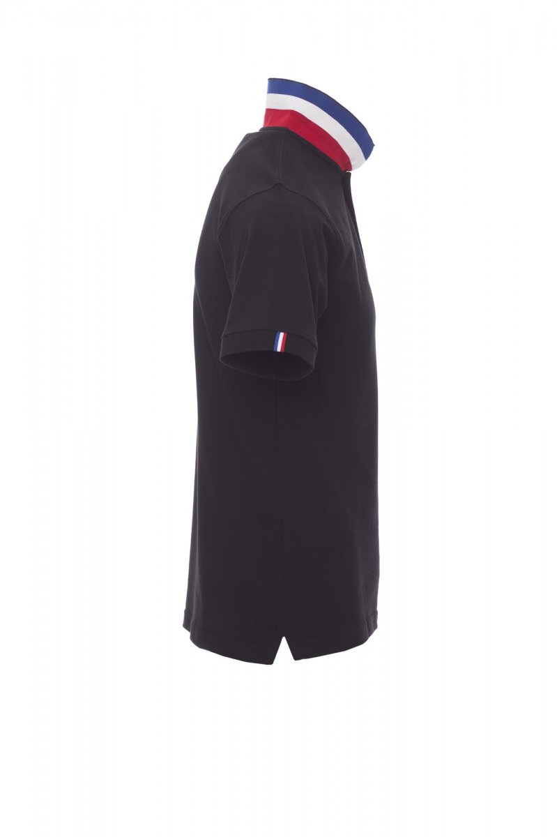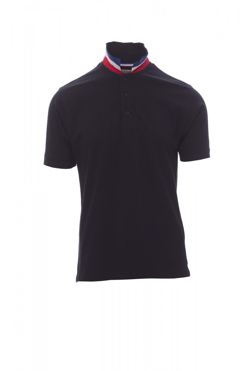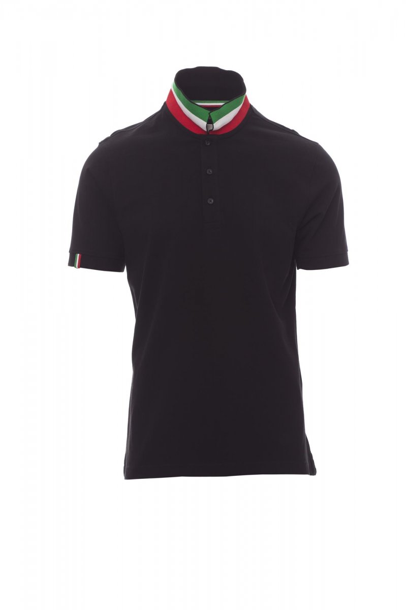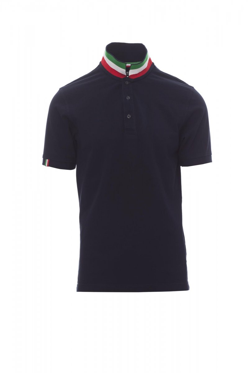 Herenpoloshirt met korte mouwen met 3 bijpassende knopen met parelmoereffect, bijpassende kraag met contrasterende onderkant (kleuren van de vlag), rechte mouwrand in kleur (dezelfde kleur als de kraag), geribde kraag- en mouwrand, rand van zijsplitten in kleuren van de vlag, verborgen stiksels bij de kraag met jersey band (kleuren van de vlag), versterkingsband aan de zijkant, band aan de binnenzijde van de nek.