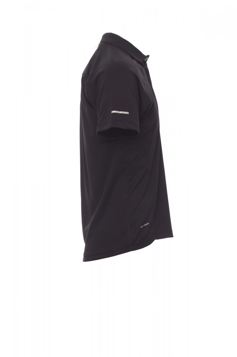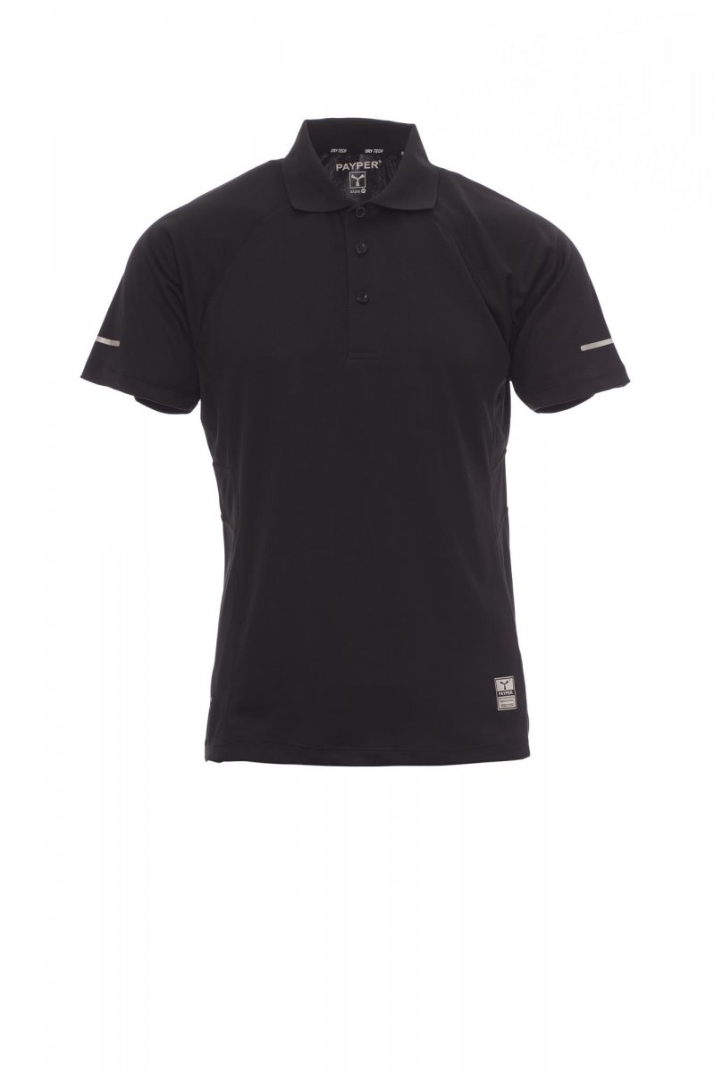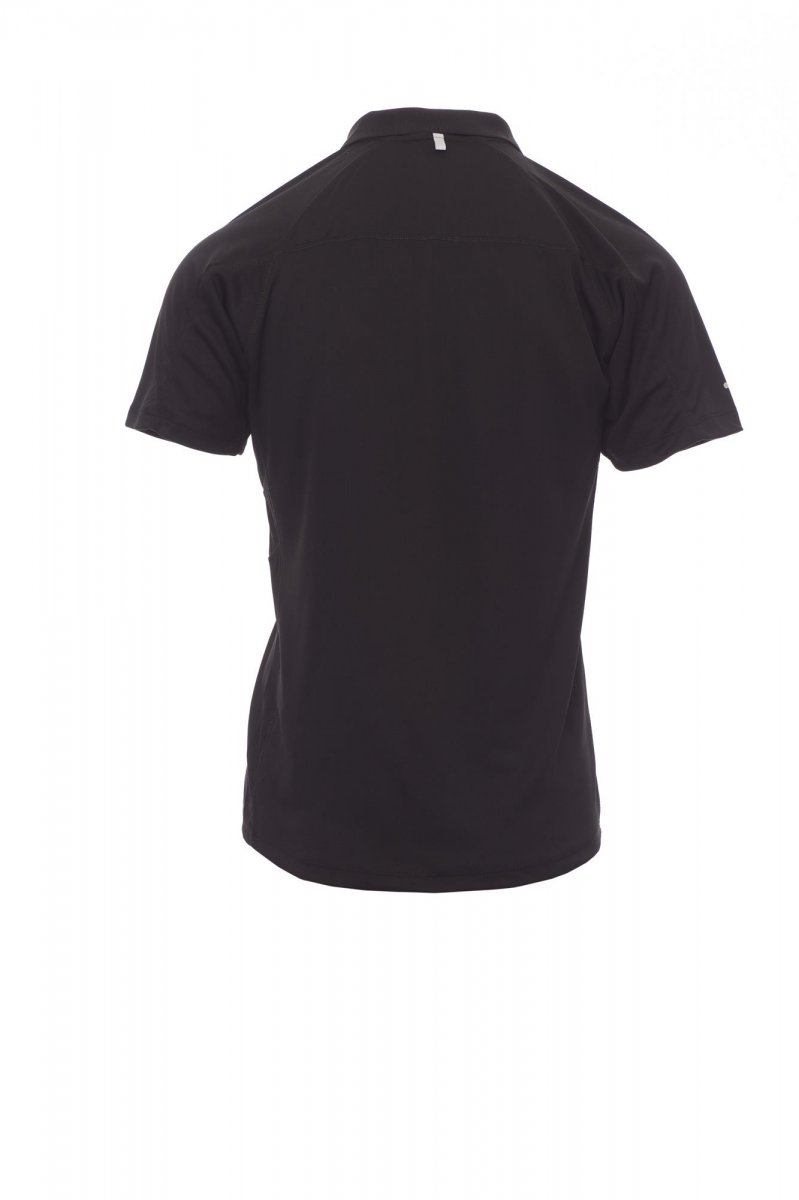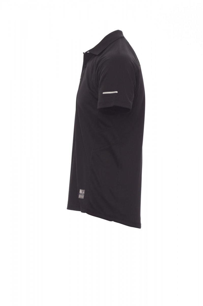 Technisch/sportief herenpoloshirt met korte mouw met drie knopen van dezelfde kleur, raglanmouwen, dubbel gestikte zijnaden voor een betere pasvorm, aangezette onderrand en langer achterpand, reflecterend inzetstuk op de mouwen en aan de achterkant van de kraag, contrasterende band in de nek, transferlabel.