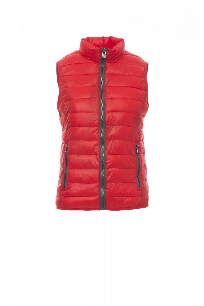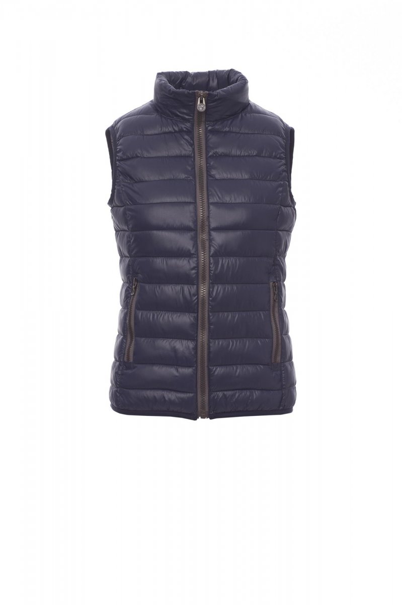Damesjas, comfort-fit, met kunststof rits van 8 mm met metalen runner, smalle boorden aan de zoom en mouwen, twee buitenzakken. Gewatteerd met polyester met donseffect, drie binnenzakken.