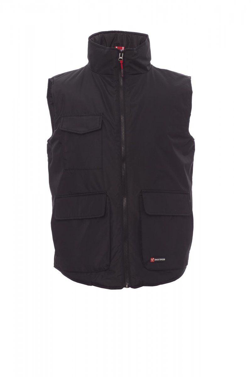 Unisex bodywarmer, kunststof rits van 8 mm met metalen runner, twee ruime voorzakken met LOCK SYSTEM, twee zijzakken, borstzak voor mobiele telefoon. Binnenzijde: gewatteerd, rits voor eenvoudiger bedrukken en borduren.