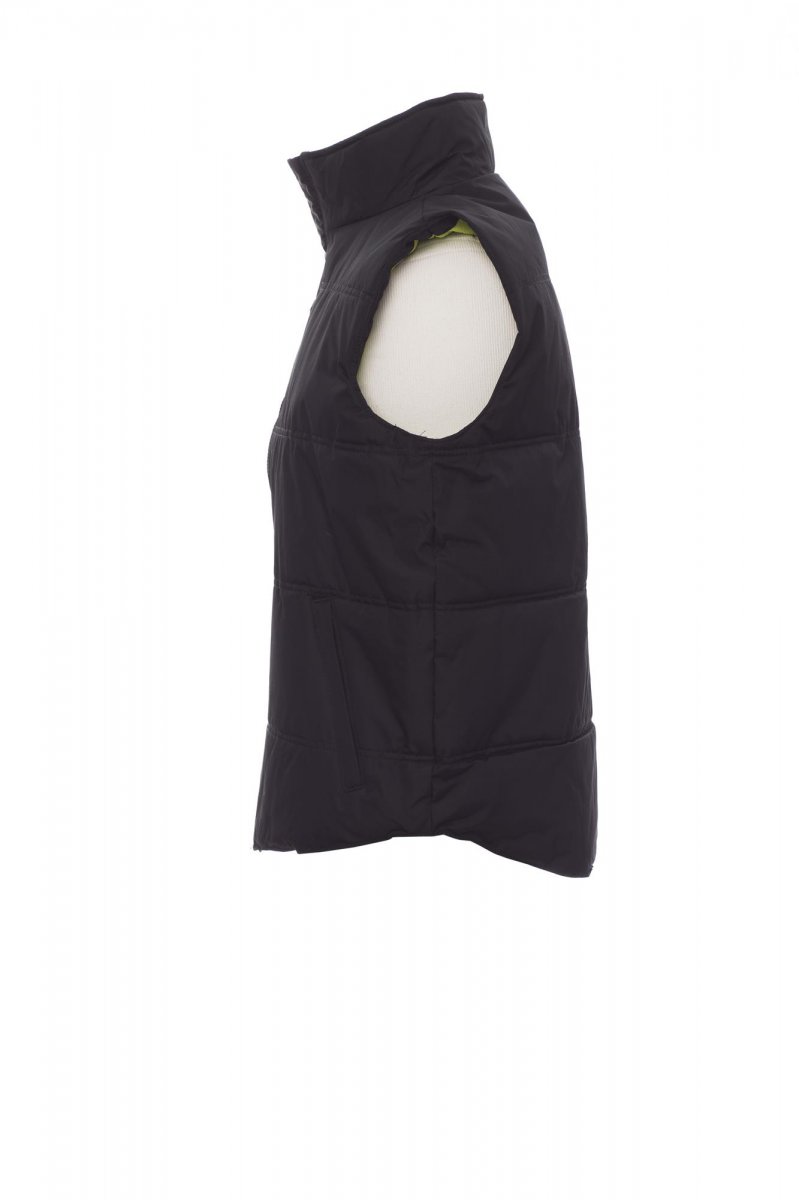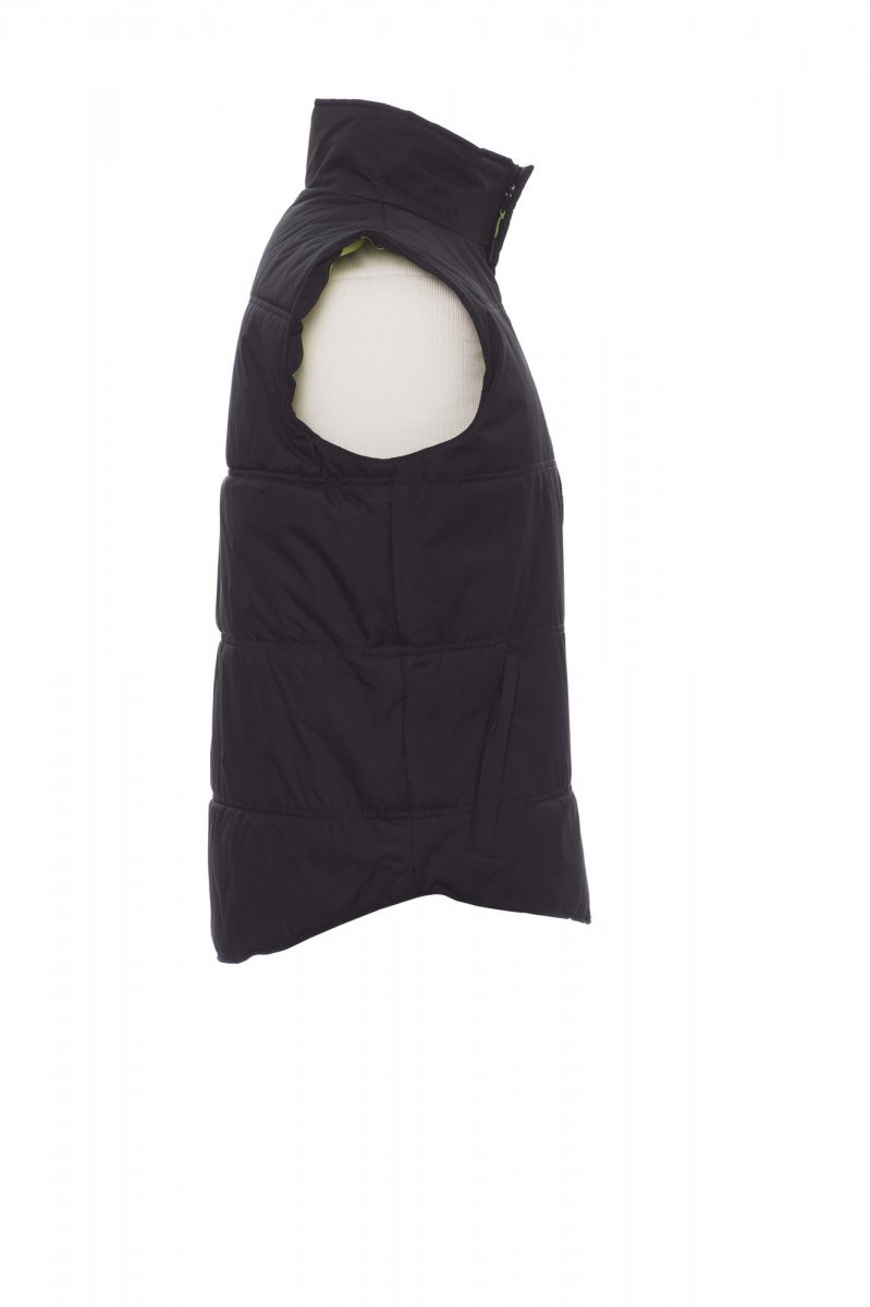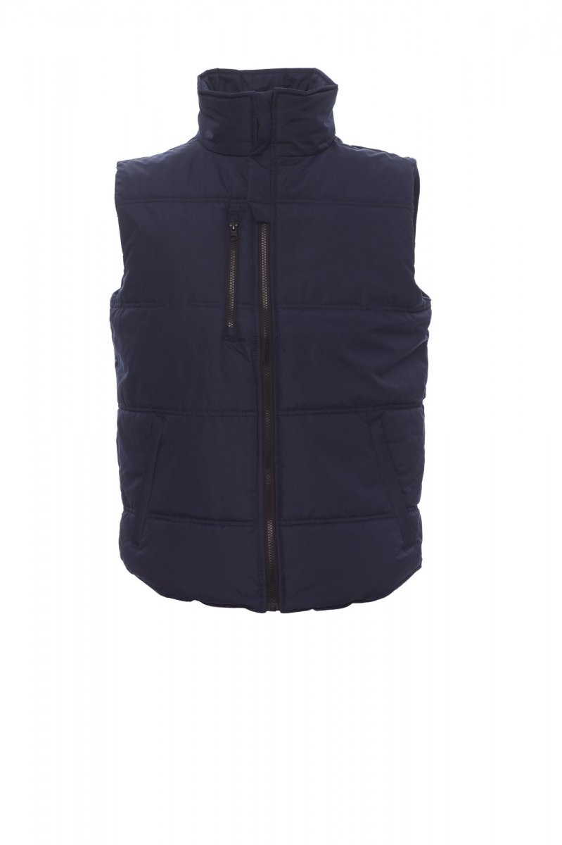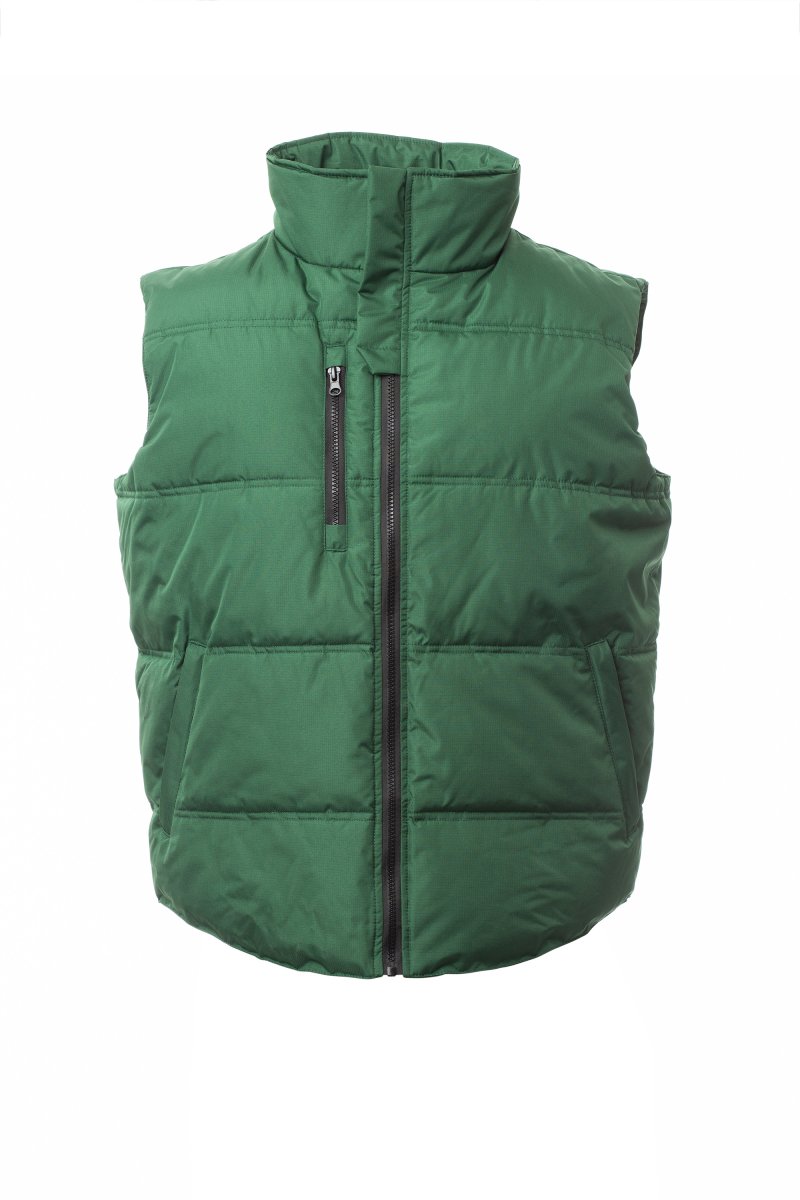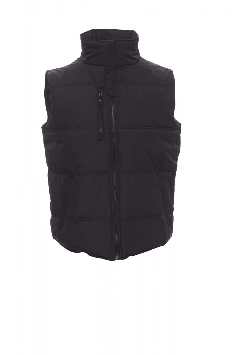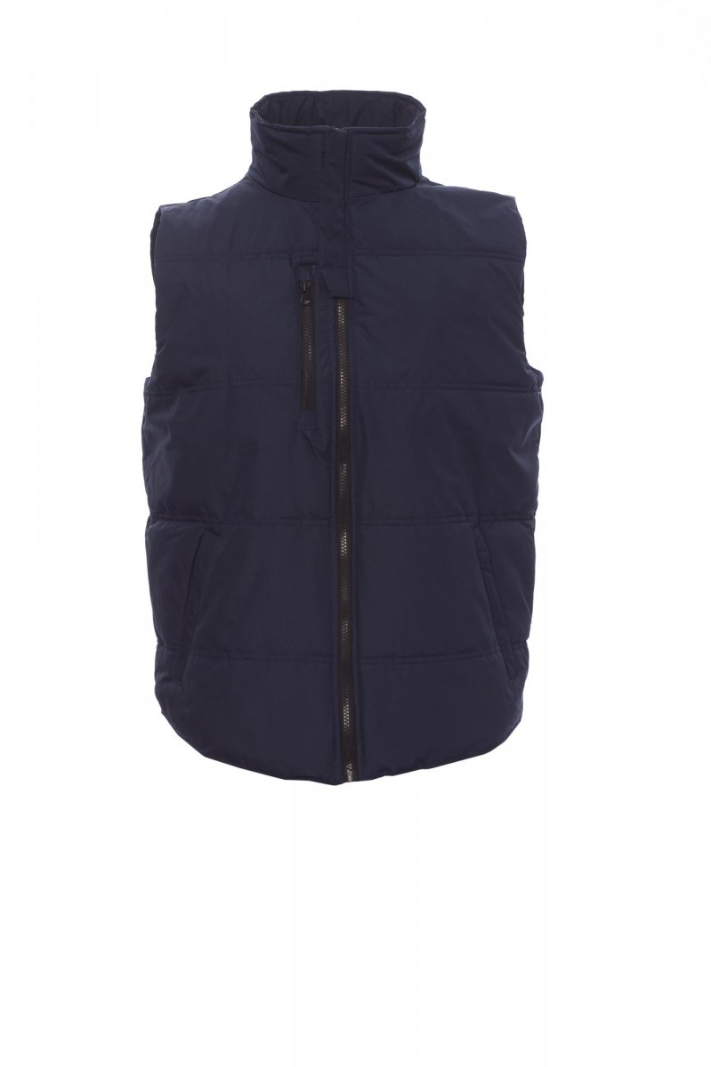 Unisex bodywarmer, kunststof rits van 8 mm met metalen runner, twee zijzakken met rits, een borstzak. Binnenzijde: gewatteerd, contrasterende voering van microfleece.