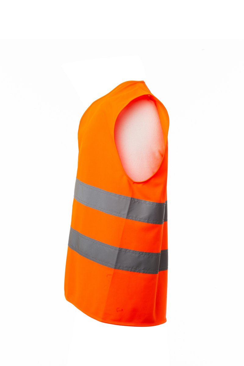 Bodywarmer met hoge zichtbaarheid, met reflecterende strepen, dubbel gestikte naden, klittenbandsluiting, rondom afgeboord.