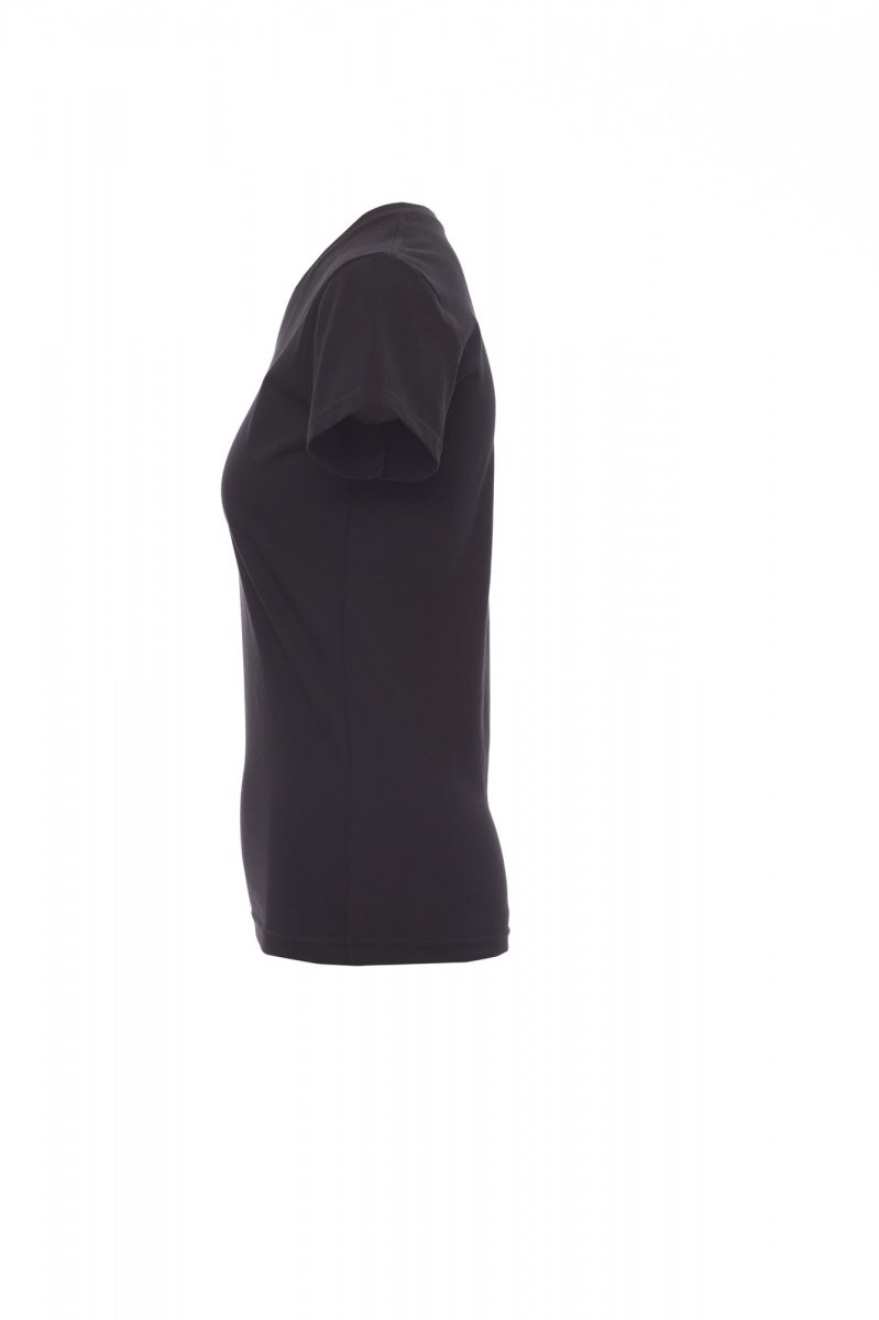 Nauwsluitend dames-T-shirt met V-hals, met afgezette geribde halsrand van 1,5 cm van een mix met spandex met stiksel aan de buitenkant, contrasterende versterkingsband van schouder naar schouder zichtbaar aan de binnenkant van de nek, elastische naden, zijnaden.