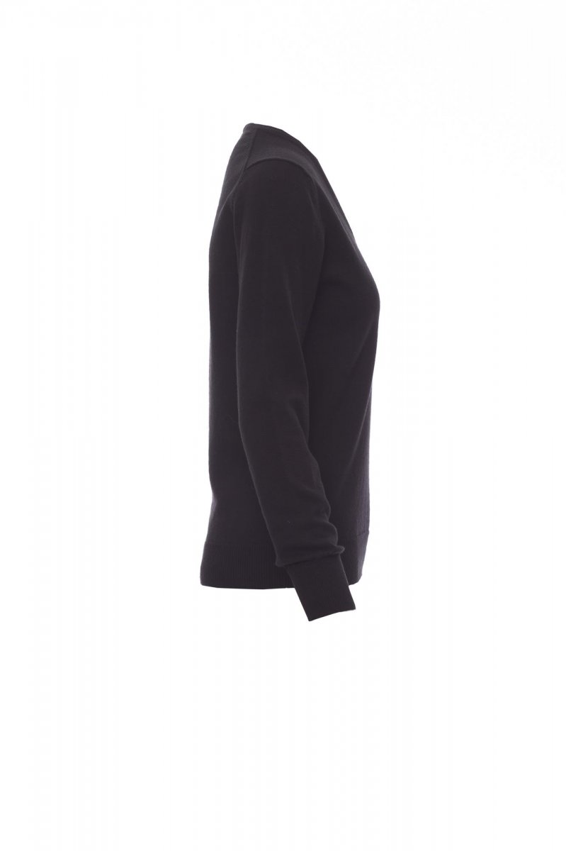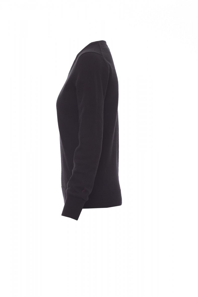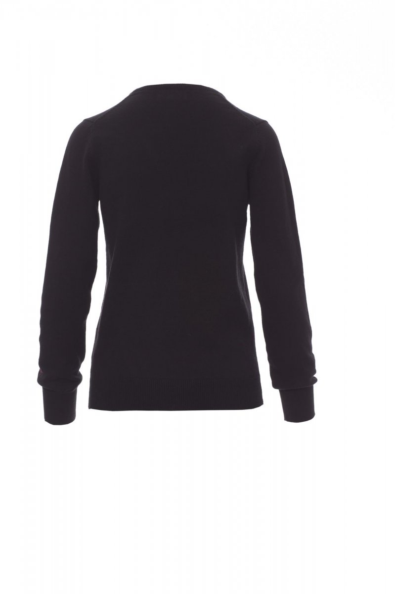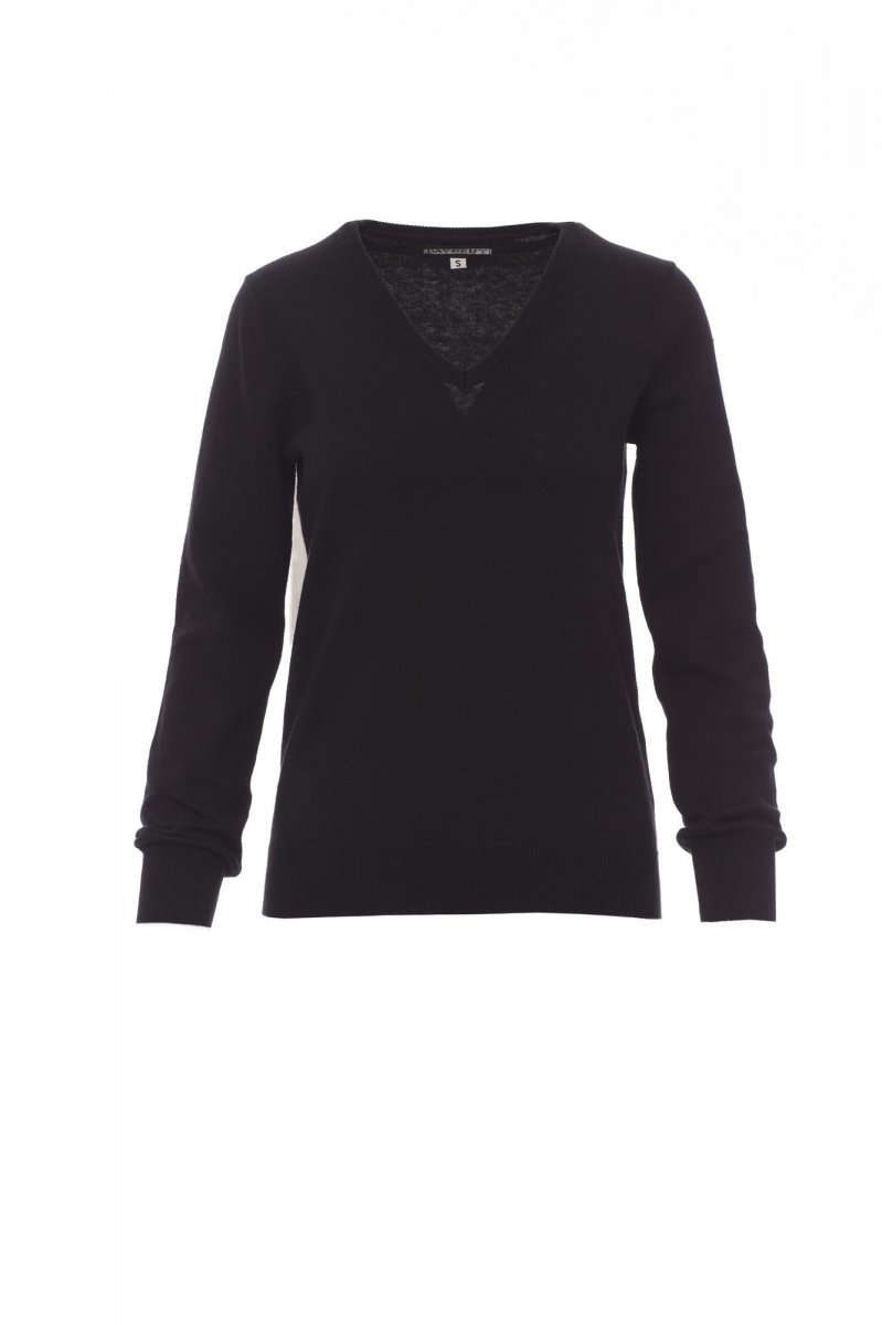 Damestruitje met V-décolleté, fijn geschoren afwerking, opengewerkt breiwerk zonder naden, fijne ribboorden voor de kraagrand, voor de polsen en de randen onderaan.