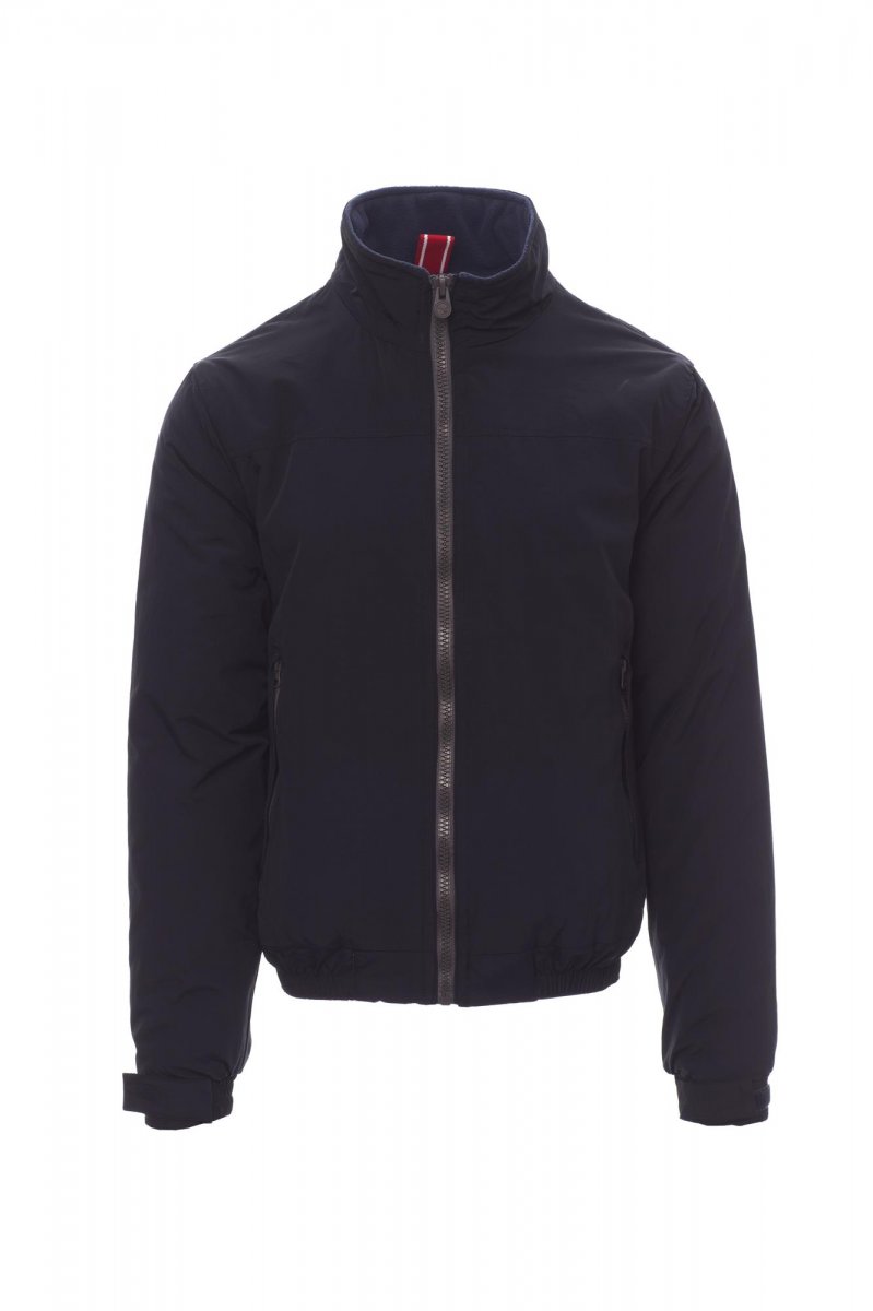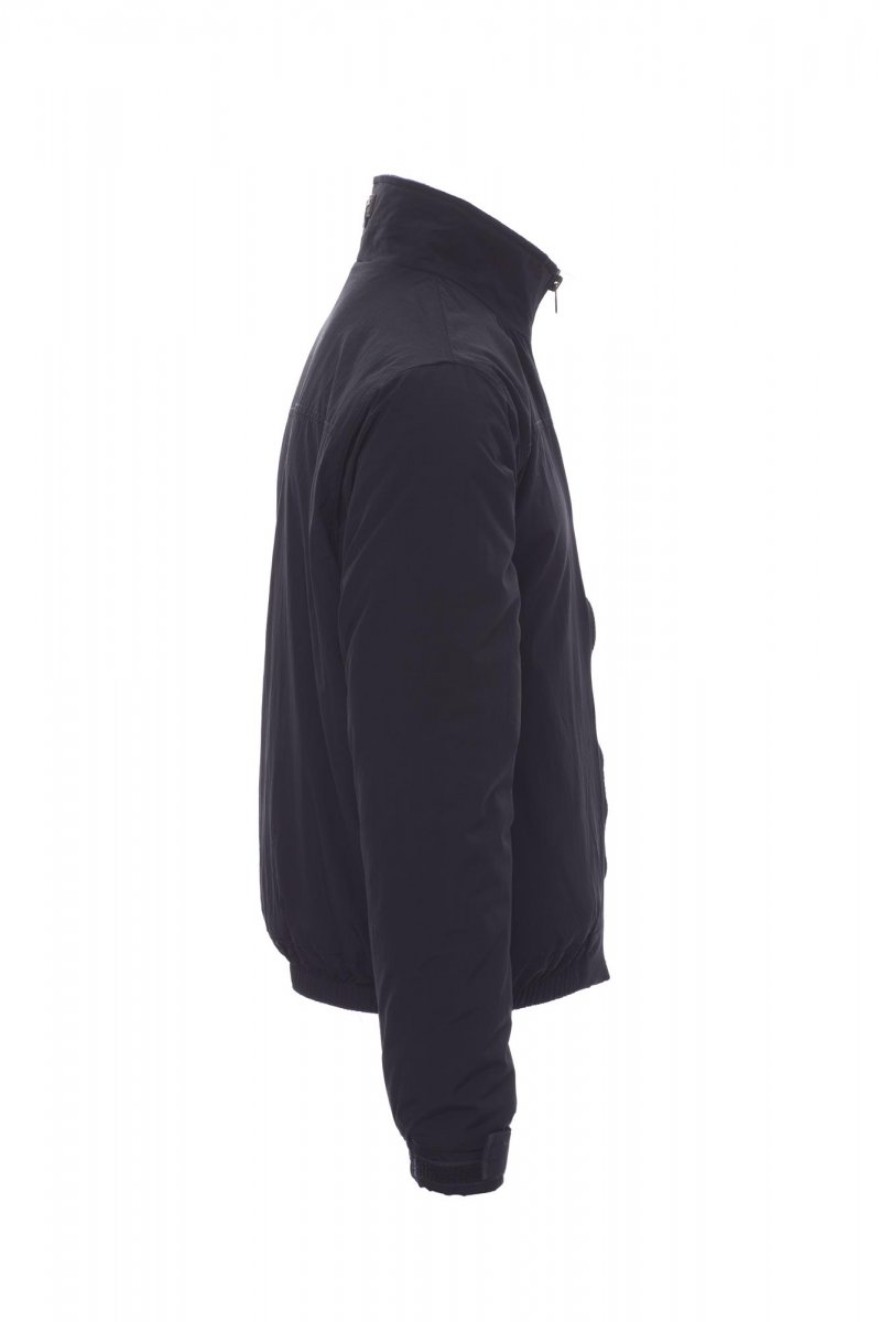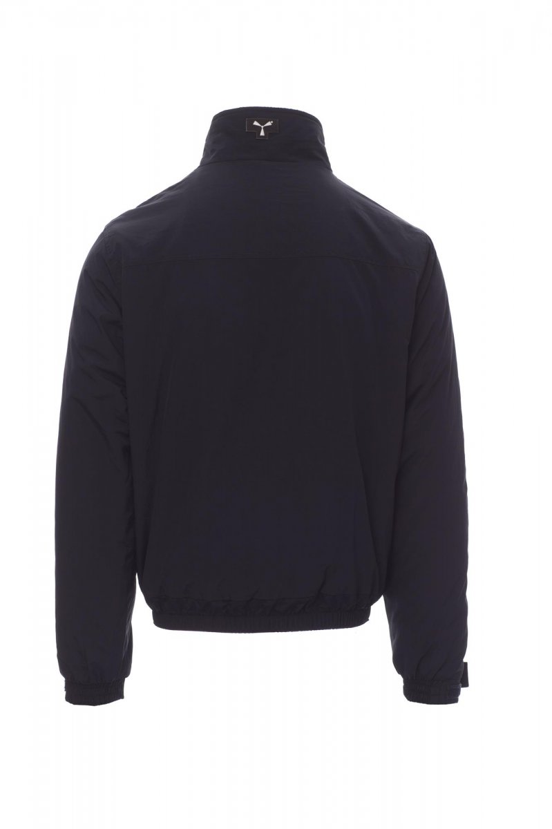 Gewatteerde herenjas, rits van 8 mm, elastiek in de taille, elastische manchetten met verstelbare sluiting, gevormde kraag, twee buitenzakken met afgedekte rits. Binnenzijde met microfleece aan de kraag en het rugpand, een zak met rits voor smartphone met opening voor snoer, rits op de borst en de rug om bedrukken en borduren te vereenvoudigen.