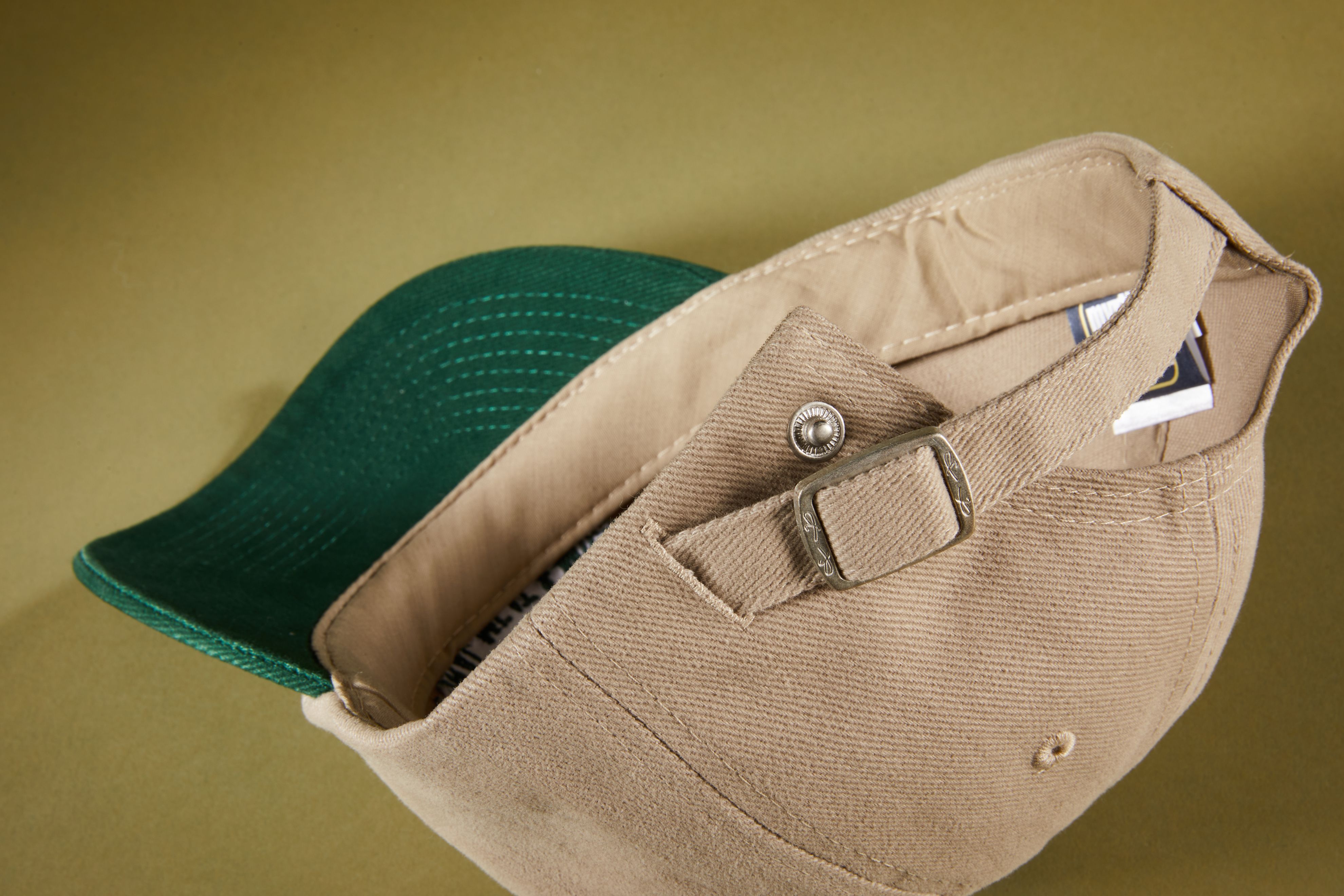 - Metalen gesp in mat zilver met drukknoop en gestikte oogjes