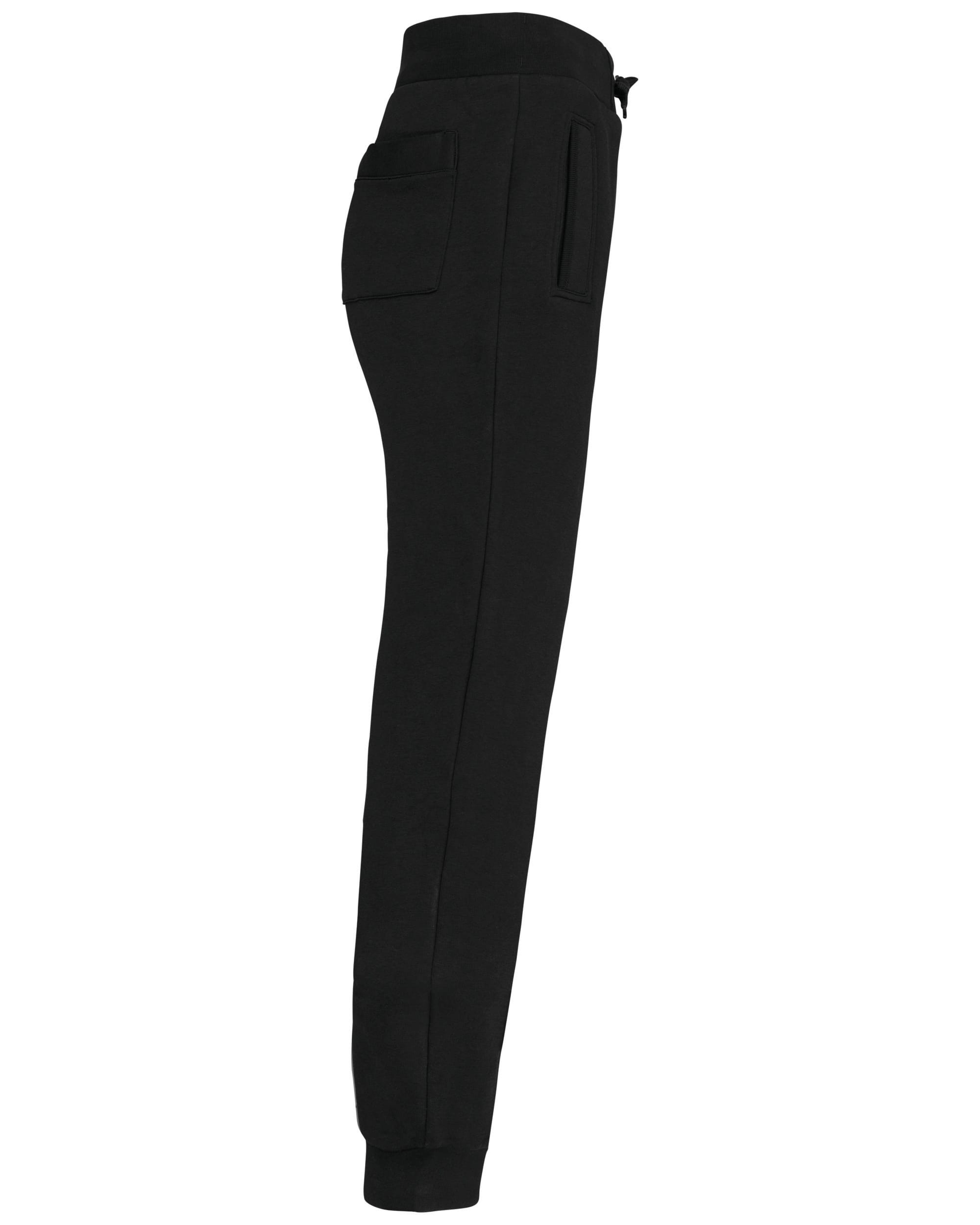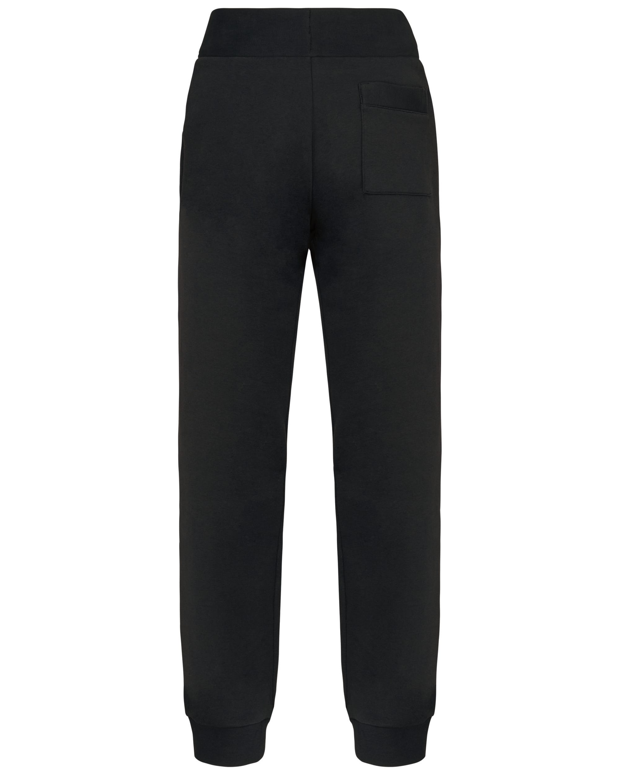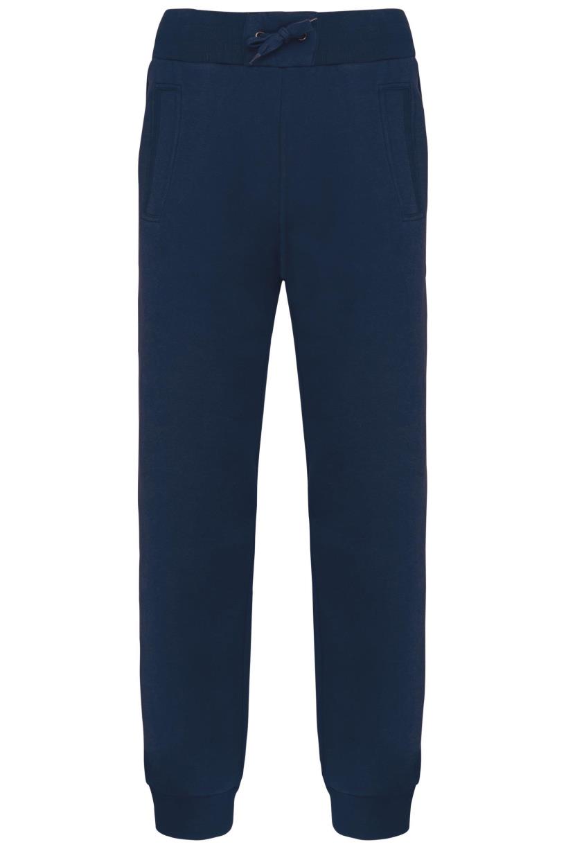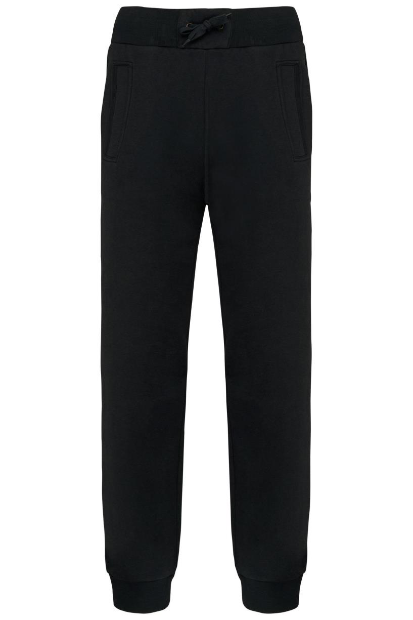 80% gekamd katoen / 20% polyester. Geborsteld fleece aan binnenkant. 2 zijvakken + 1 achterzak. Breed ribboord en aanrijgkoord aan de taille. Ribboord aan uiteinde van de broekspijpen. Gecertificeerd STANDARD 100 by OEKO-TEX®N° CQ1007/7, IFTH.