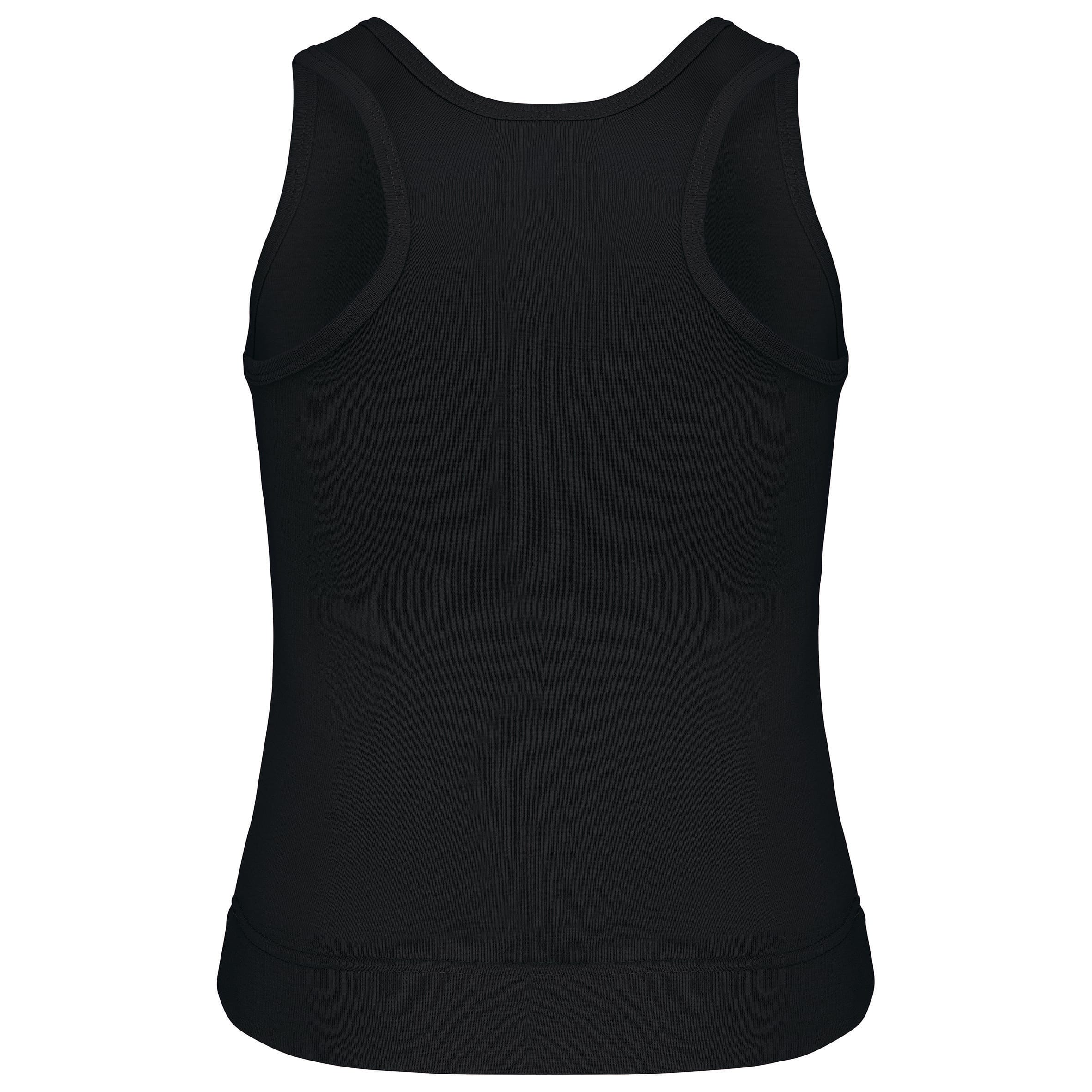 100% katoen. 1x1 rib. Racerback. Afwerking met dubbele stiksels. Gecertificeerd STANDARD 100 by OEKO-TEX®N° CQ1007/7, IFTH.