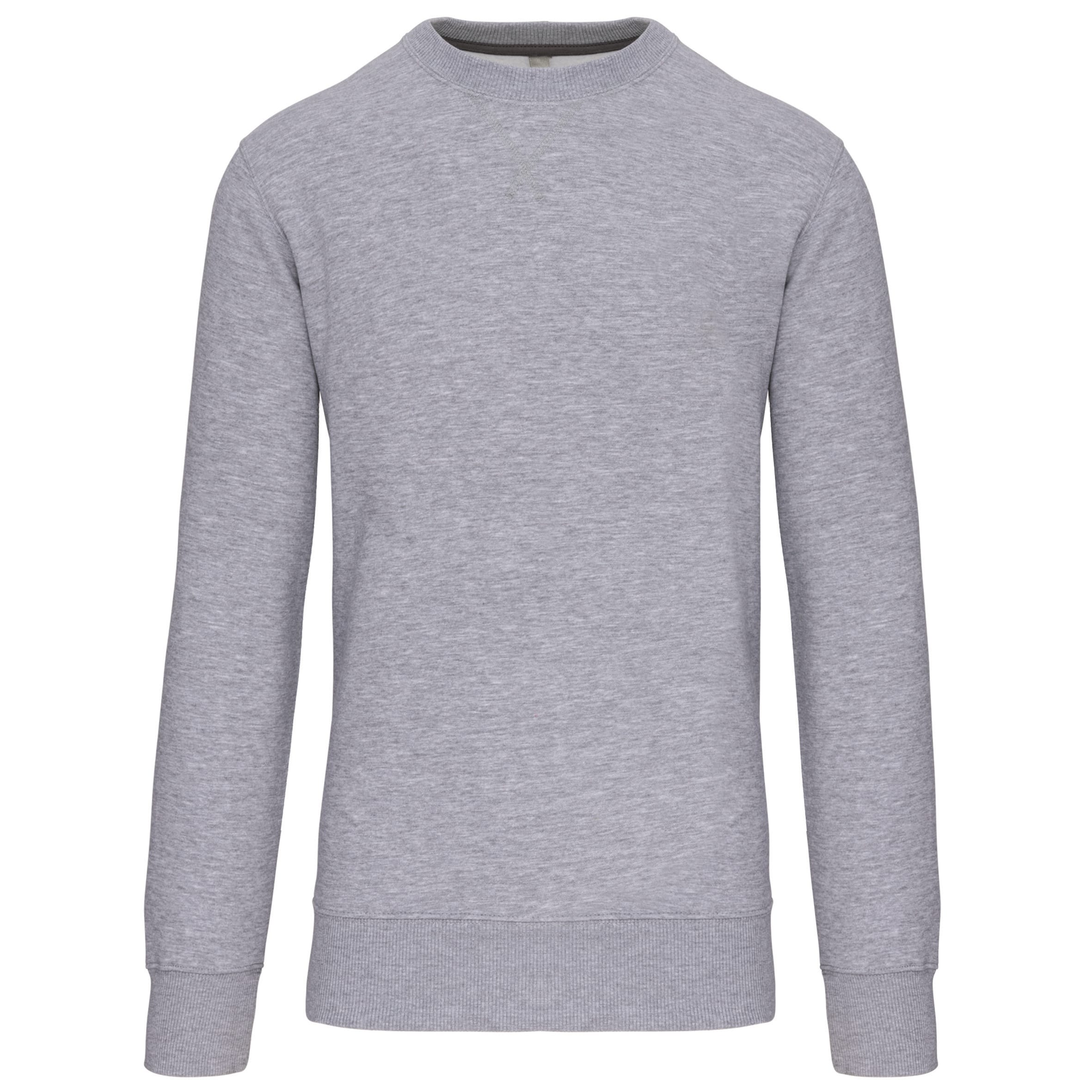 80% gekamd katoen / 20% polyester. Voorgekrompen en gekamd fleece aan binnenkant sweater. Sillicone wash. Gecontrasteerd nektape. (Middle Grey voor de kleur Oxford Grey en Heather Grey voor alle andere kleuren). Ronde hals in rib. Kraag afgewerkt met kruis-overstiksels. Afwerking in ribboord. Gecertificeerd STANDARD 100 by OEKO-TEX® N° CQ 1007/8, IFTH.