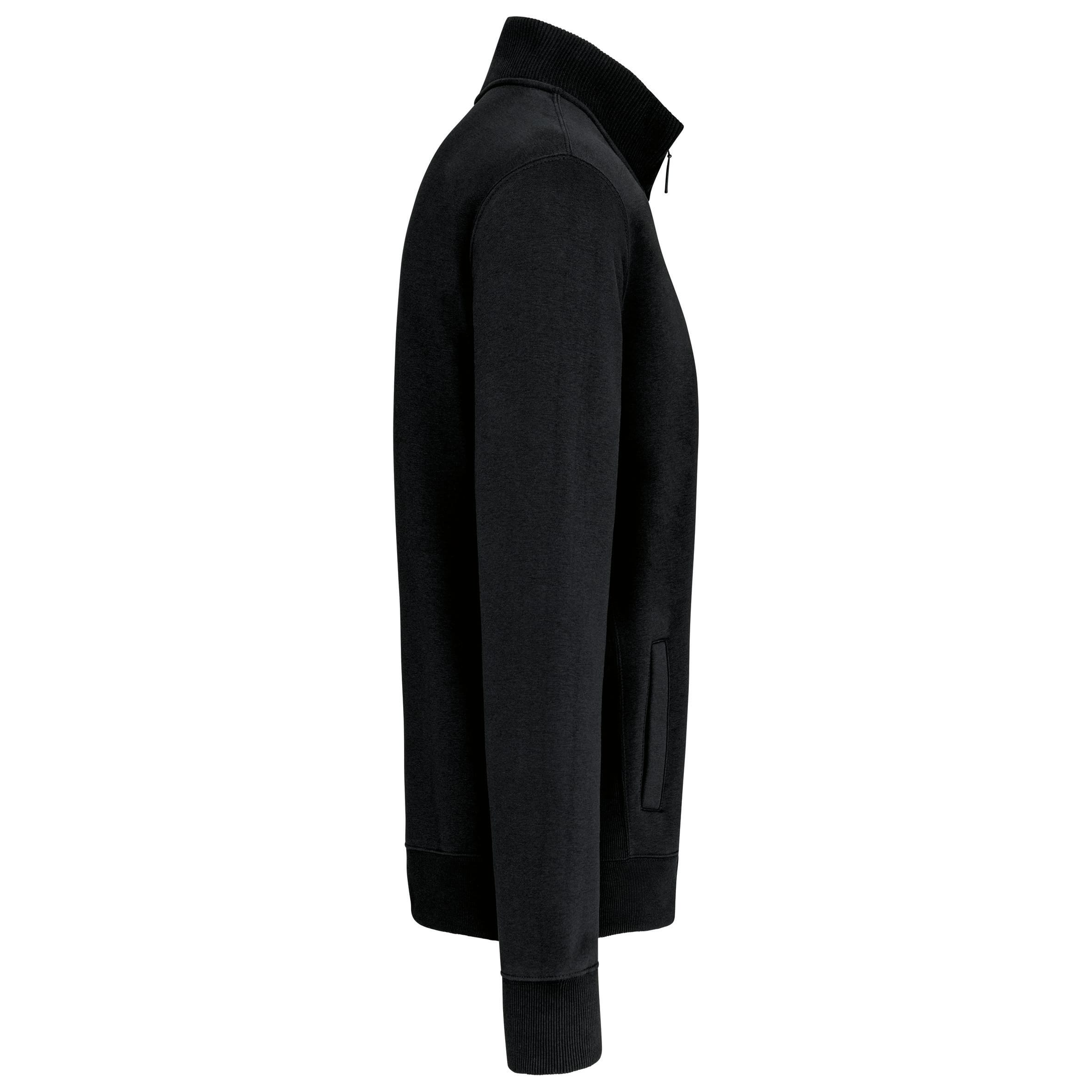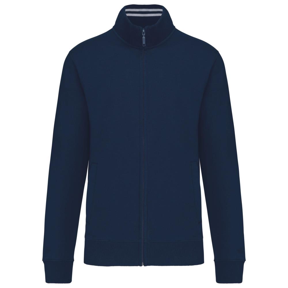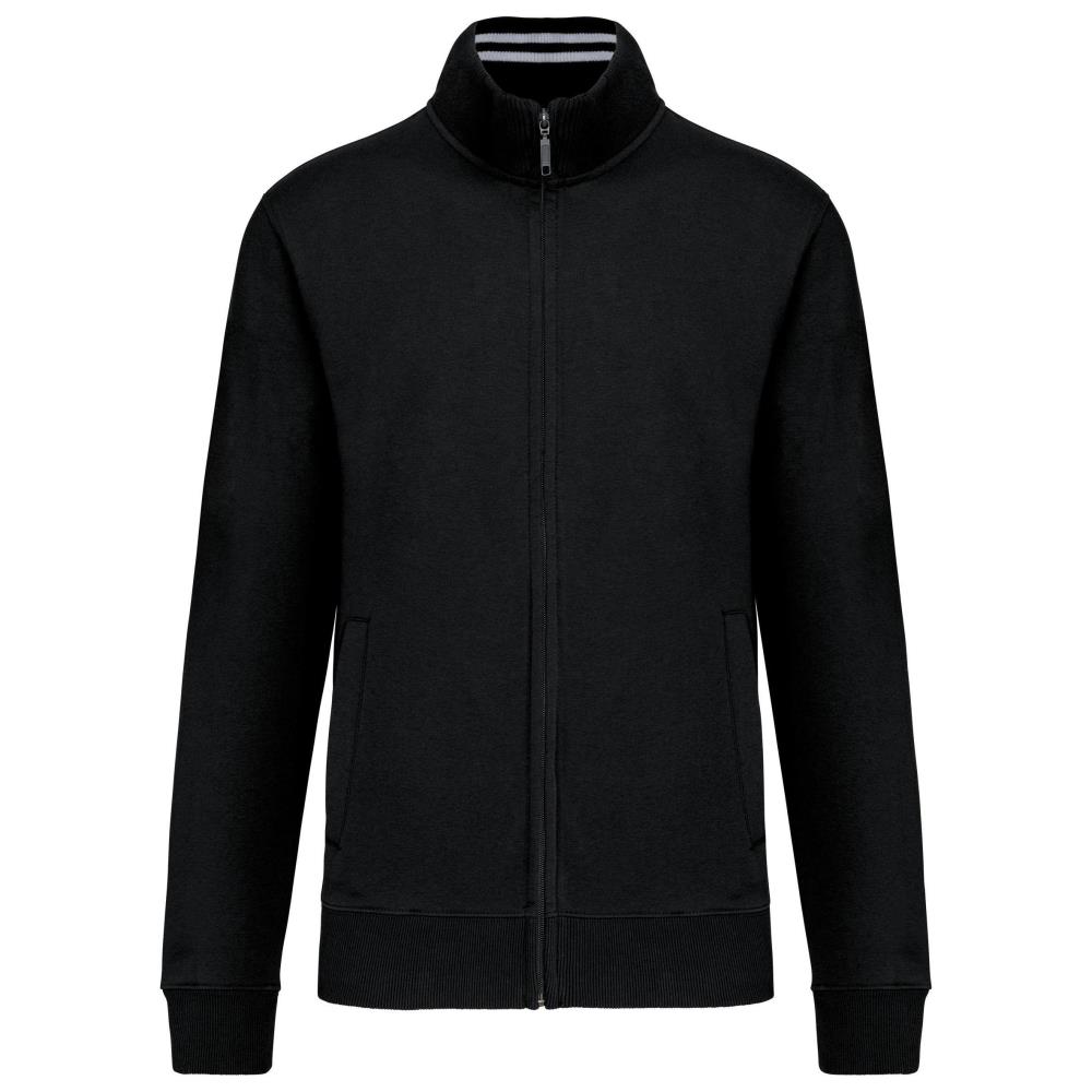 80% gekamd katoen / 20% polyester "Low Shrunkage Fleece". Geborsteld en voorgekrompen fleece aan de binnenkant. Gewassen met siliconen. Getailleerde snit dankzij verticale inzetstukken in rib. Toon op toon nektape. (Behalve voor de kleur White = Oxford Grey nektape) Binnenkant kraag in rib met lijnen in contrastkleur. 2 voorzakken. Ribboord aan de mouwuiteinden en onderaan. Ritssluiting. Gecertificeerd STANDARD 100 by OEKO-TEX® N° CQ 1007/8, IFTH.